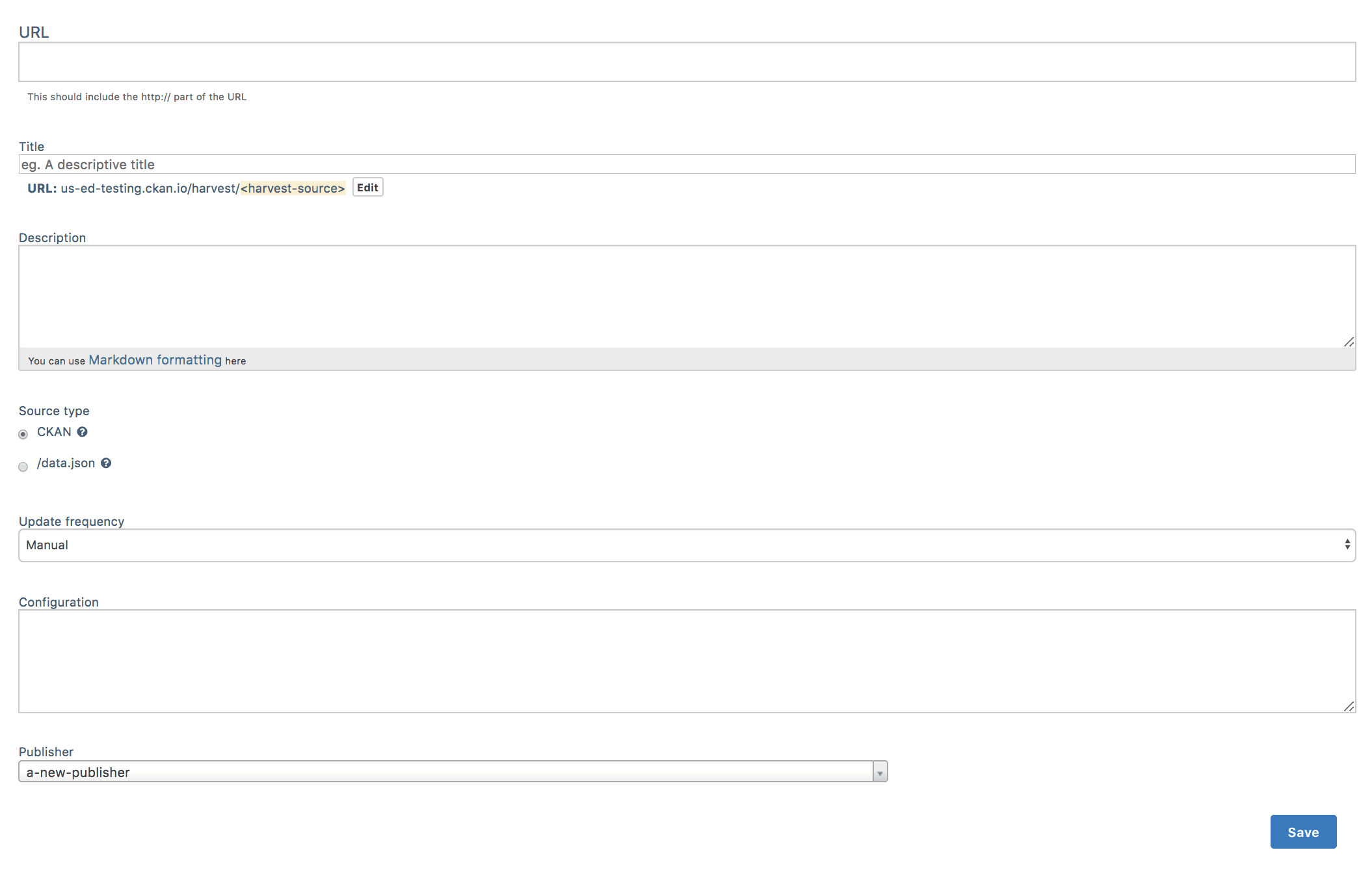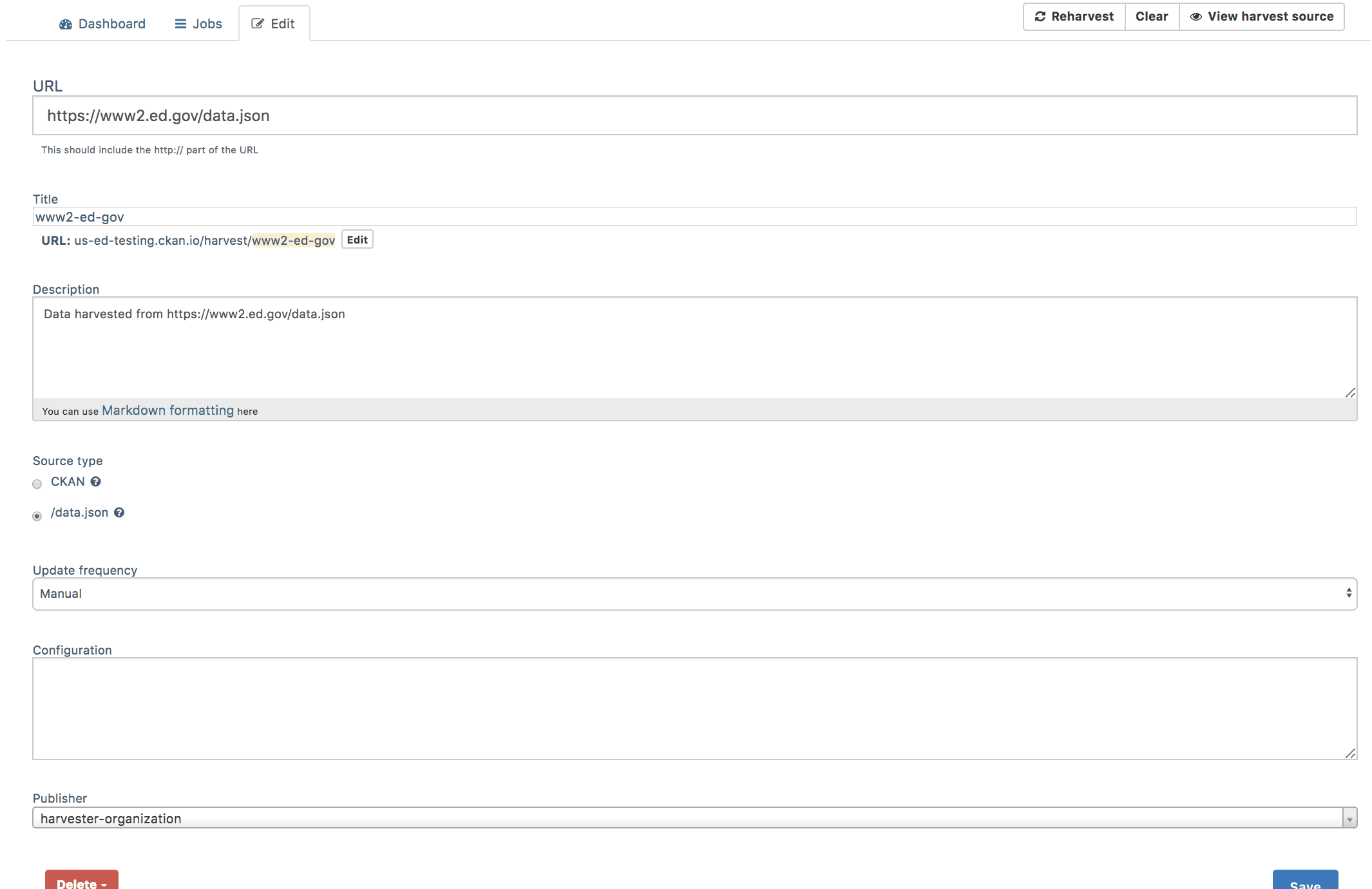 - Harvest from multiple sources and with a variety of source metadata formats (e.g. data.json, DCAT, CKAN etc).