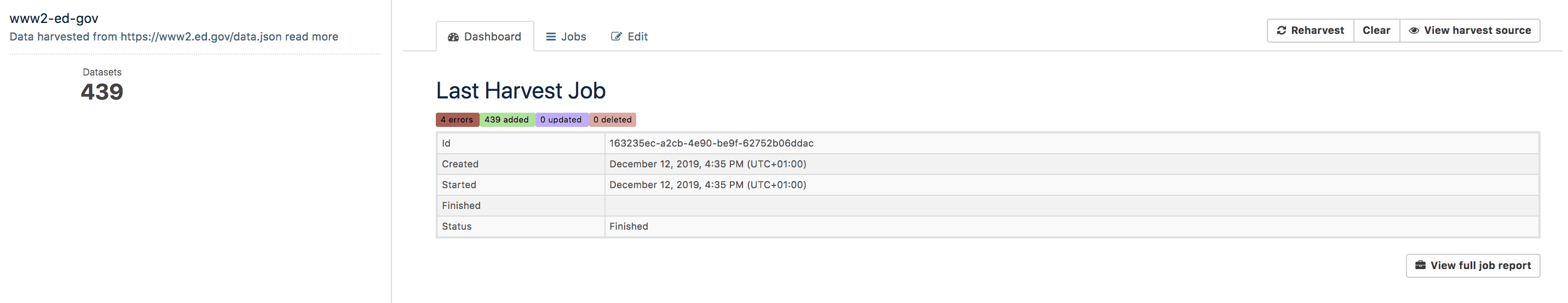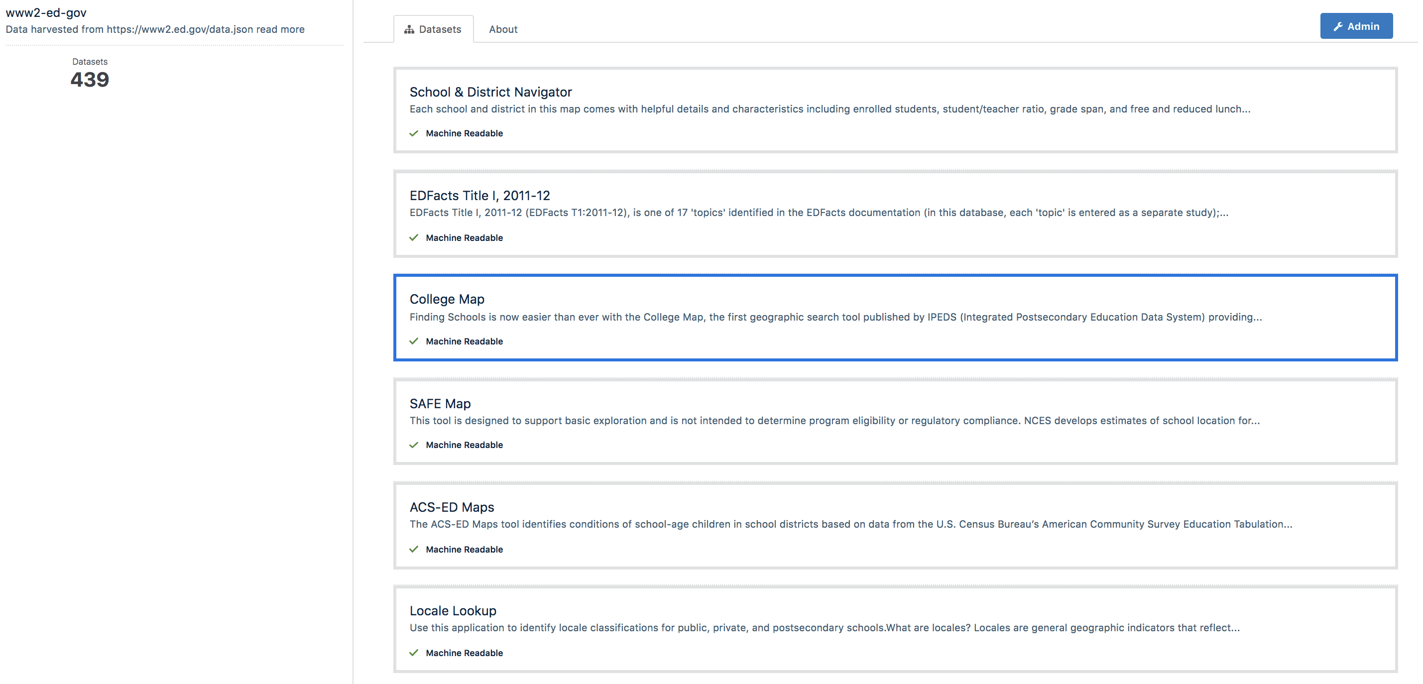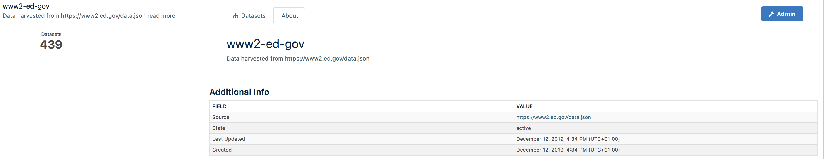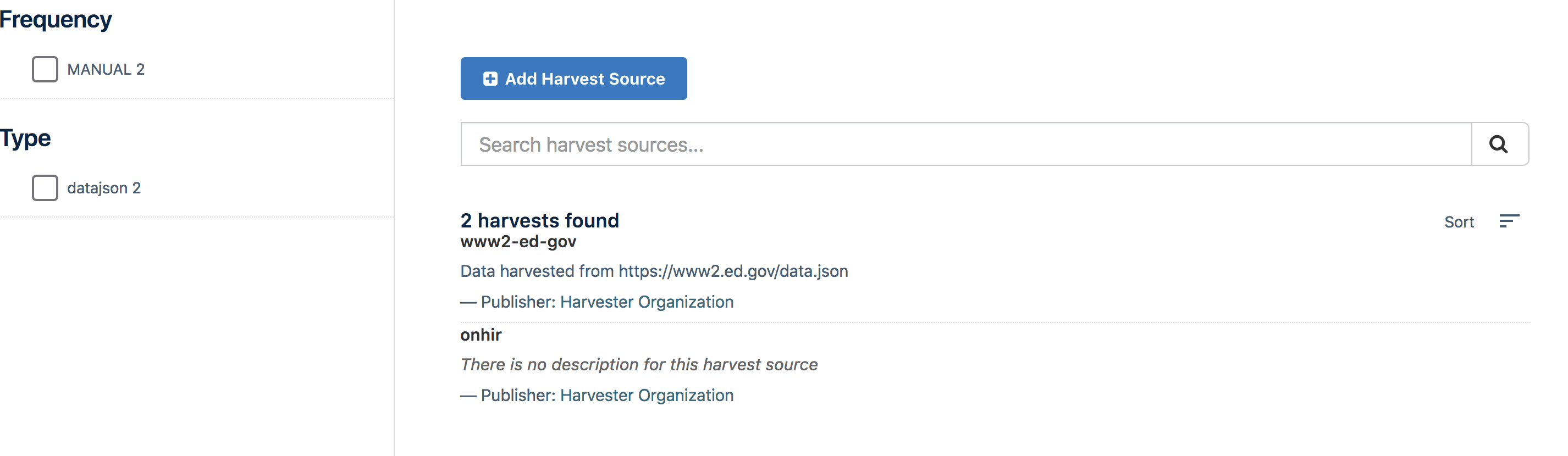 Clicking on Harvest Source gives you list of datasets harvested