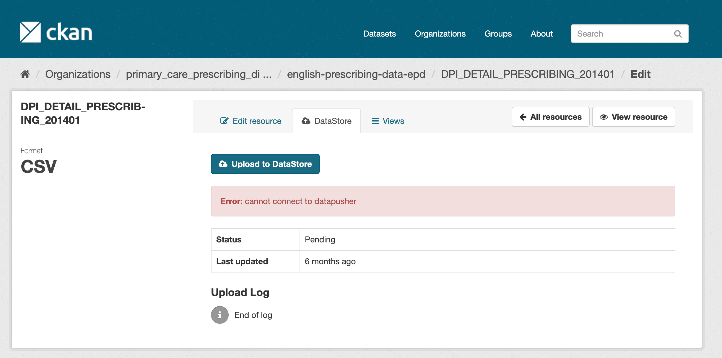 datapusher --> datastore